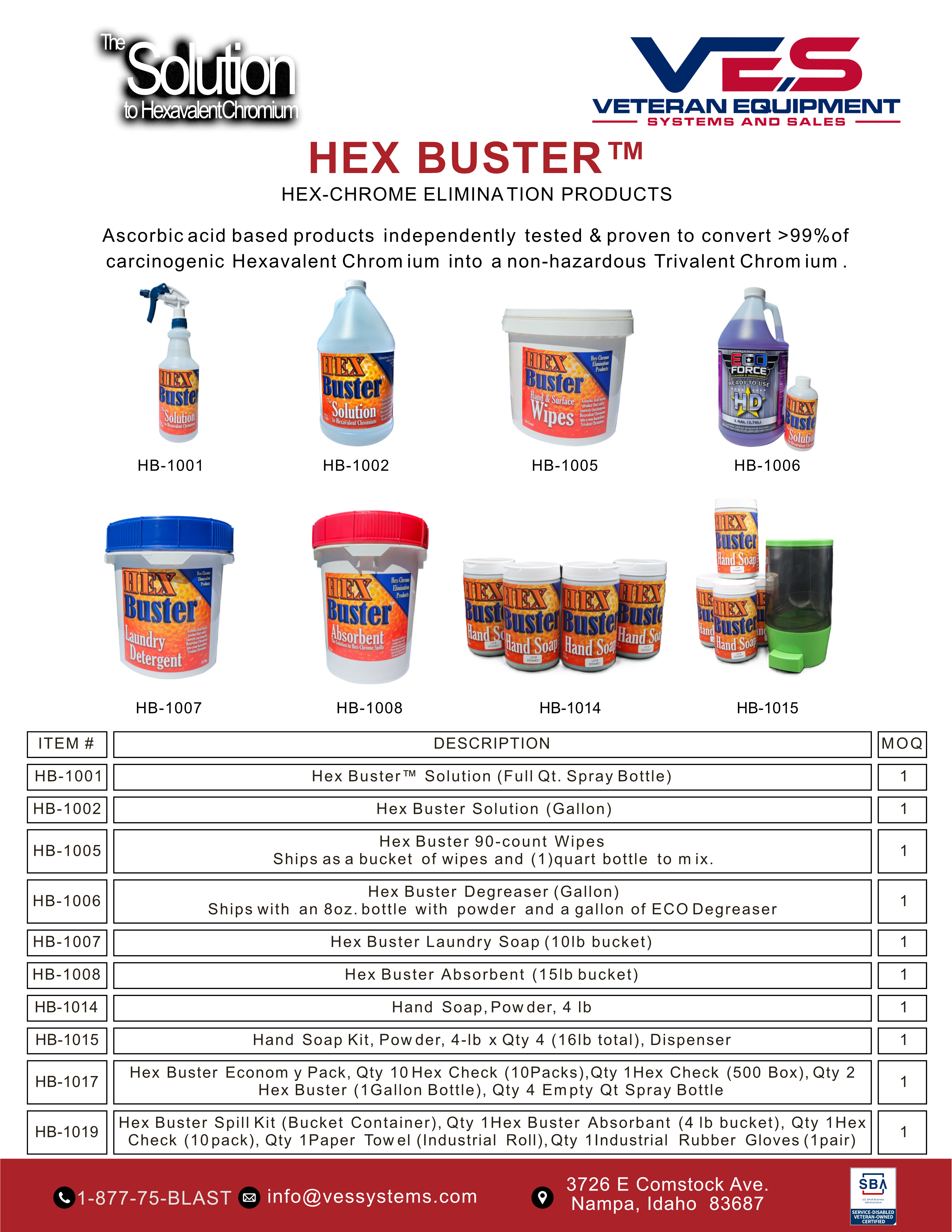 COMPREHENSIVE PROTECTION: From our flagship Hex Buster Solution to everyday workplace essentials—degreasers, hand soap, laundry detergent, absorbents, and more—every product in our Hex Buster™ family shares one mission: neutralizing Cr(VI) at its source.